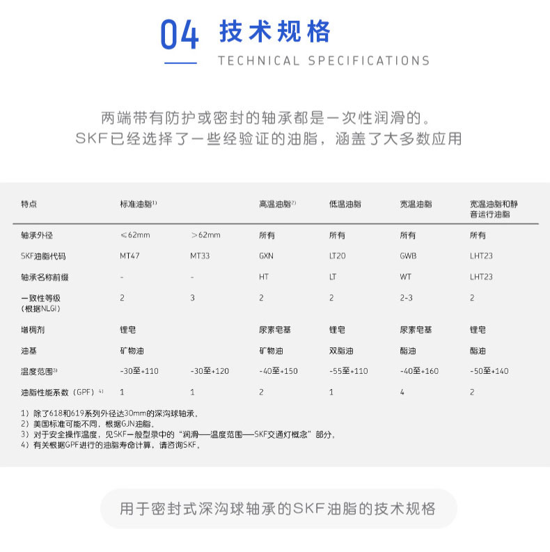 SKF深溝球軸承是一種儀器器件,有開式、雙面帶密封圈,帶密封的軸承在外圈上開有可裝密封圈或防塵蓋的溝槽,適用于高轉(zhuǎn)速甚至極高轉(zhuǎn)速的運行。